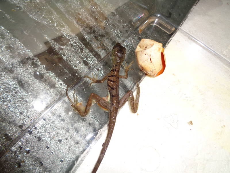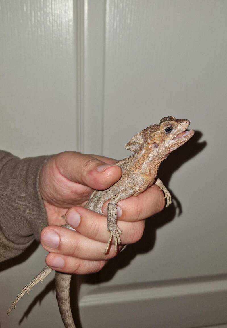 Hieronder een Basiliscus Plumifrons slechts een paar minuten uit het ei!